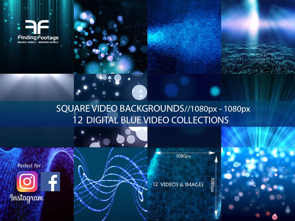 12 SQUARE VIDEO BACKGROUNDS (1080px-1080px) / DIGITAL BLUE VIDEO COLLECTIONS